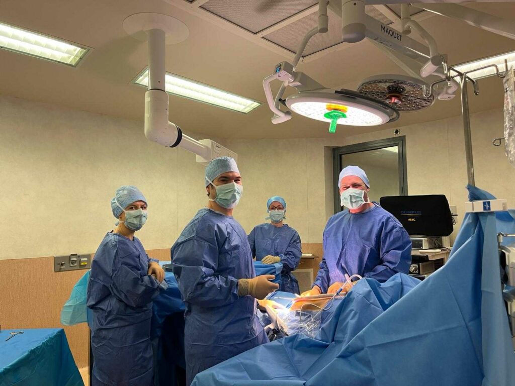 Sur cette photo, Dr GAC Marie Mélanie, gynécologue-obstétricien aux Hôpitaux Privés Rennais – Saint-Grégoire – Vivalto Santé, effectue cette intervention de haute précision, assistée par Anthony MOUREAU futur Docteur Junior.
